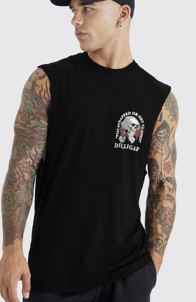 Stay Strapped Muscle shirt - is backordered and will ship as soon as it is back in stock.