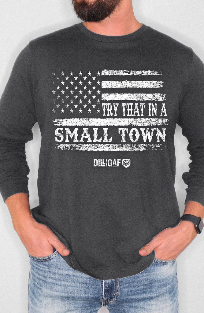 Try That In A Small Town/ Flag Longsleeve - is backordered and will ship as soon as it is back in stock.